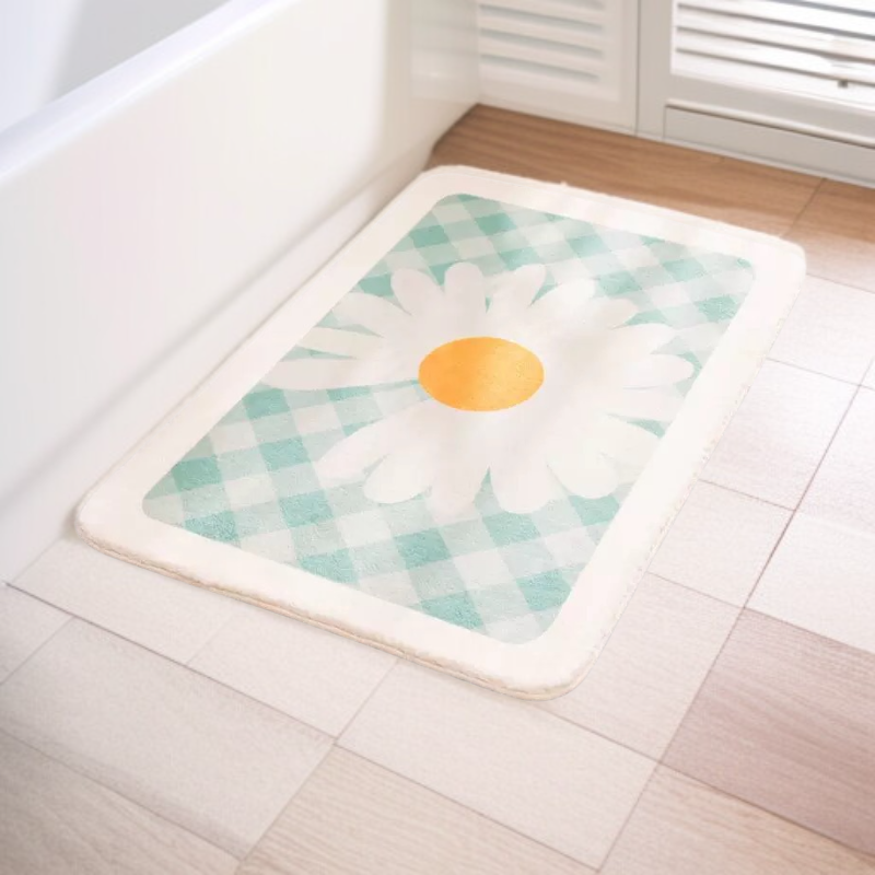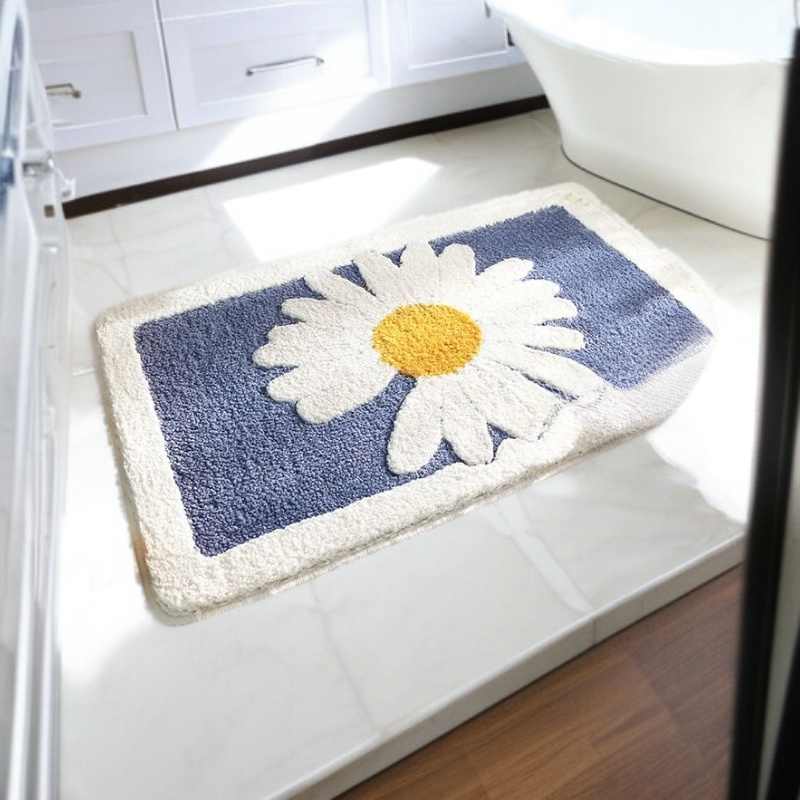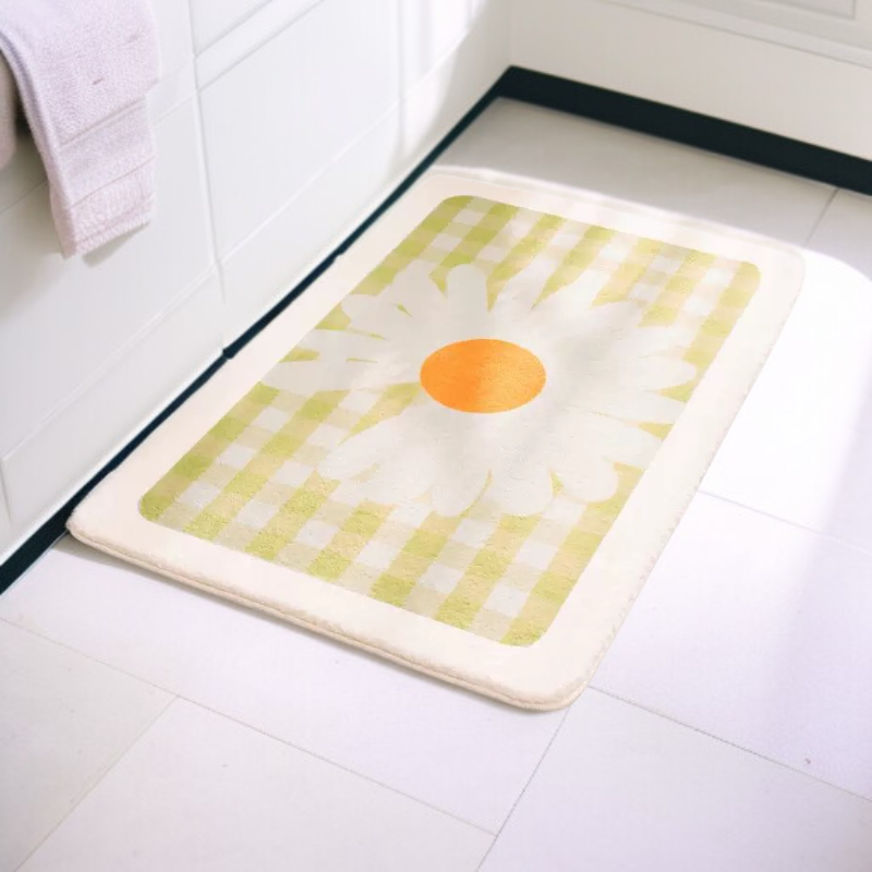 Kunstwollteppich mit Gänseblümchen, saugfähig und rutschfest, für das Badezimmer